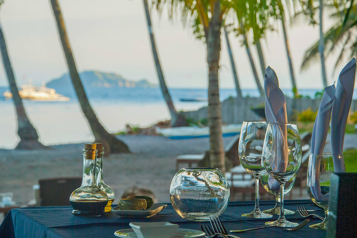 Meer und Infinity Pool funkeln um die Wette, der einsame Sandstrand und die tropische Gartenanlage wetteifern um Ihre Gunst. Ein außergewöhnliches Sortiment an erlesenen Weinen und köstliche Gaumenfreuden bezaubern die Sinne, lie-benswürdiges Personal und das erfahrene Management lesen Ihnen jeden Wunsch von den Augen ab. Stil, Eleganz, Gastfreundlichkeit und Qualität sind die Schlagworte dieses Ausnahme-Resorts, der Name ist Programm. Hier kann man sich fallen lassen, Energie tanken, philippinische Gastlichkeit genießen - kurz: einen unvergesslichen Aufenthalt erleben.
