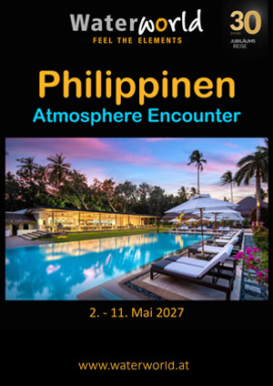 Die Insel Negros liegt im Herzen des Visayas Archipels und es ist bei Weitem keine Übertreibung, die Region Dauin auch (nicht nur) als die „Lembeh-Strait der Philippinen“ zu bezeichnen. Die Schätze von Dauin sind bunt und artenreich, und es bedarf manchmal eines geschulten Auges, um Sie zu finden. Winzige Anglerfische, Krebse und Shrimps aber auch jede Menge Nacktschnecken in allen Größen gehören zu den oft skurrilen Critters, auf deren Habitate die lokalen Tauchguides bestens trainiert sind. Doch es gibt weit mehr: Abwechslung bringen z.B. Tagesausflüge nach Apo Island und Siaton, wo sich dem Taucher völlig andere Unterwasserlandschaften präsentieren. Beeindruckende üppig-bunte Korallenriffe, Schildkröten, Barrakuda- und Makrelenschwärme sowie Seeschlangen ziehen den Taucher in ihren Bann. Entlang der gesamten Küstenlinie beginnen die Tauchplätze unmittelbar an sanft abfallenden Sandstränden und Riffen. Auch das Hausriff des eleganten und dennoch familiären Atmosphere Resort & SPA wartet täglich mit über-raschenden Begegnungen auf, die einen immer wieder gerne hierher zurückkehren lassen. Alle Bootstauchgänge werden in kurzer Fahrtzeit mit einer der bequemen Bangkas, den traditionellen philippinischen Auslegerbooten, der zum Resort gehörenden Tauchbasis erreicht. Das Atmosphere Resort & SPA ist der ideale Ort, um einzigartige Begegnungen mit den kleinsten der kleinen, aber auch sehr großen Meeresbewohnern zu haben, und zudem die Zeit vor Ort in einen wohltuenden und erholsamen exklusiven Verwöhnurlaub verschmelzen zu lassen.